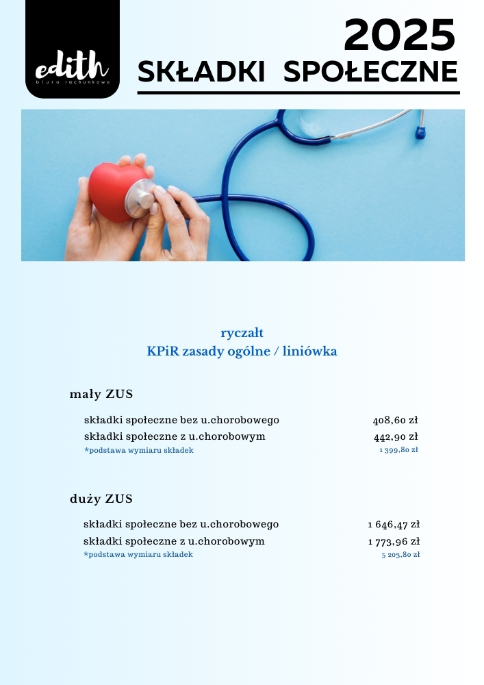 Składki ZUS w 2025r. (BiuroEdith)22 stycznia 202523 stycznia 2025biuroedith, firma, Księgowość, ZUS Znamy już wszystkie 𝐬𝐤ł𝐚𝐝𝐤𝐢 𝐙𝐔𝐒 𝐧𝐚 𝟐𝟎𝟐5𝐫. Znowu idą mocno w górę… Również do pobrania w wersji pdf: składki ZUS 2025